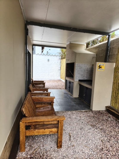 Parrillero techado y ducha exterior.