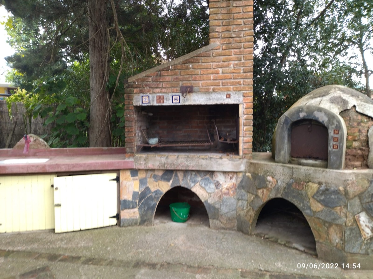 Patio y fondo con parrillero techado, churrasquera y horno de barro: perfecto para reuniones familiares y sociales.